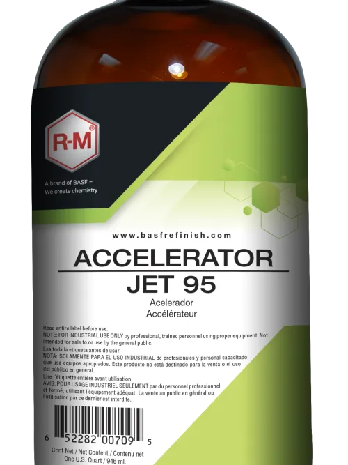 Aditivo acelerador que reduce los tiempos de secado de productos 2K R-M, mejorando la eficiencia del proceso en reparaciones rápidas.